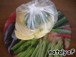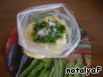 Пакет надуть и завязать горловину, тщательно потрясти, чтобы соль и зелень распределилась равномерно.