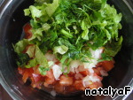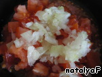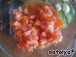 Необходимо взять глубокую посуду и очень мелко нарезать в нее помидоры
