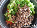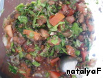 Засыпать соль, часть зелени и вылить ложку растительного масла