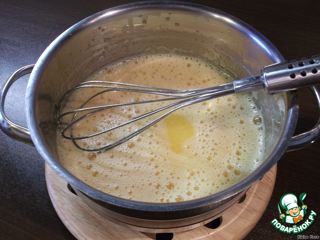 Возвращаем будущий крем на плиту и на маленьком огне, постоянно помешивая, прогреваем его до лёгкого загустения - 5 минут. Не кипятить!!!