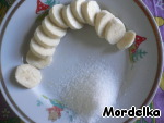 Нарезать банан кружочками. Насыпать немного сахара. -