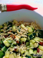 Все ингедиенты перемешать. Только не выливайте все масло из-под сыра, думаю, будет многовато, но это решать только вам. Розмарин и тимьян уберите и, если вы не любите перец горошком, - тоже. Оставшееся масло ни в коем случае не выкидывайте. Оно стало такое ароматное - вы можете его использовать, например, завтра, когда приготовите просто свежий салат с овощами. И не забудьте во время готовки всегда держать рядом Корно. Это итальянский амулет древнего происхождения, означает "рог". В Италии используют его для защиты от дурного глаза. Ну это, конечно, шутка.