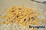 Добавляем растопленное масло и замешиваем смесь до тех пор, пока она не начнет крошиться,