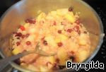 Добавляем клюкву, мед, оставшуюся сахарную пудру перемешиваем