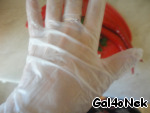 И очищаем перец от семян. В оригинальном рецепте предлагалось еще вычистить перегородки, но я знаю, что острота именно в них, поэтому их я оставила. В семечках тоже есть острота, но я побоялась, что они достаточно не перемелются блендером. Перец режем на кусочки и перчатки безжалостно выкидываем. Глазки мне дороже.