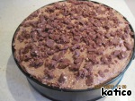 Тесто распределяем по форме (у меня 21 см), маленький кусочек теста оставляем для посыпки пирога сверху