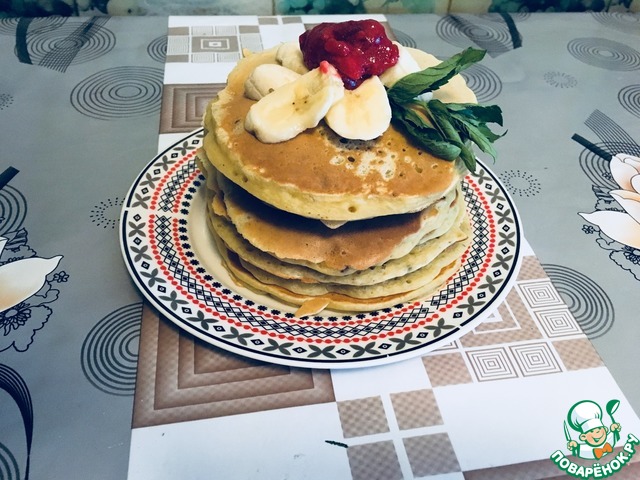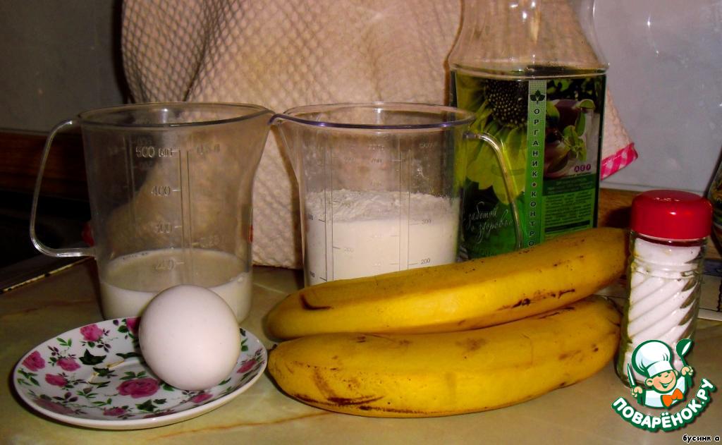 Вкусные банановые оладушки. Очень просты в приготовлении. На сайте все с добавлением кефира, у меня без него))