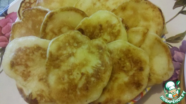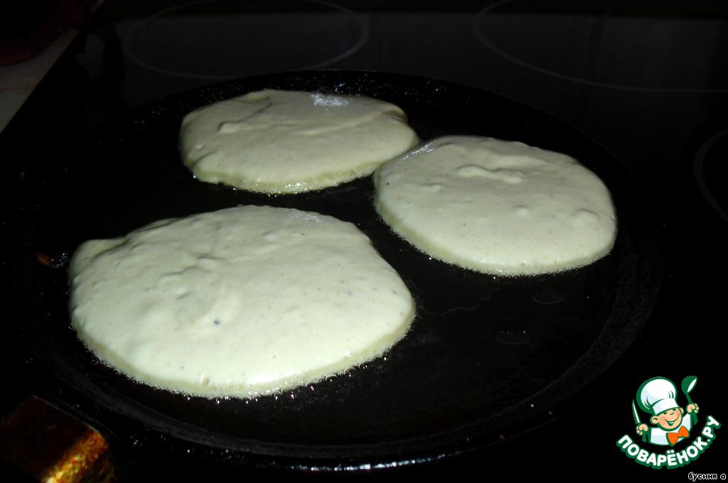 теперь разогреваем сковороду, если любите(как я), то смажьте сковородку маслом. Ну и, выпекаем наши оладьи! -