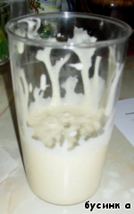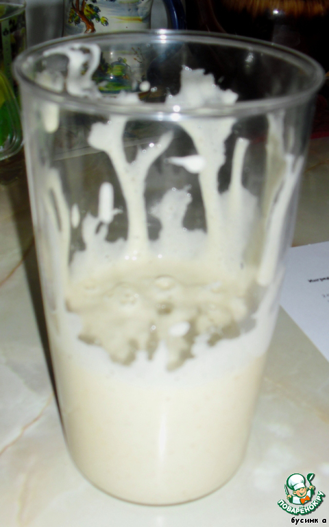 Вливаем молочко и затем засыпаем муку (тут у меня произошло чп,на оч большой скорости блендера тесто и мука начали у меня вылетать по всей кухне, так что фото нет))
