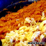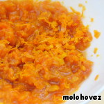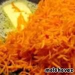 Морковь натереть как можно мельче (у меня чуть крупновато). Потушить пару минут на сливочном масле. Добавить мед и еще потушить.