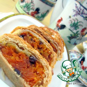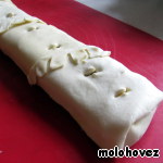 Офомила в виде штруделя. Ножницами сделала надрезы, чтобы выходил пар.