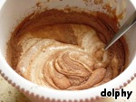 В отдельную посуду просейте муку, какао и разрыхлитель теста, перемешайте. Добавьте к яичной смеси в 3 приема, аккуратно перемешивая движениями снизу вверх. Добавьте масло, также осторожно перемешайте.