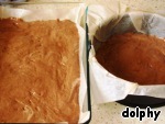 Духовку разогрейте до 180 град. Две формы, прямоугольную 20*30 см и круглую диаметром 20 см, выстелите бумагой для выпечки и слегка смажьте.