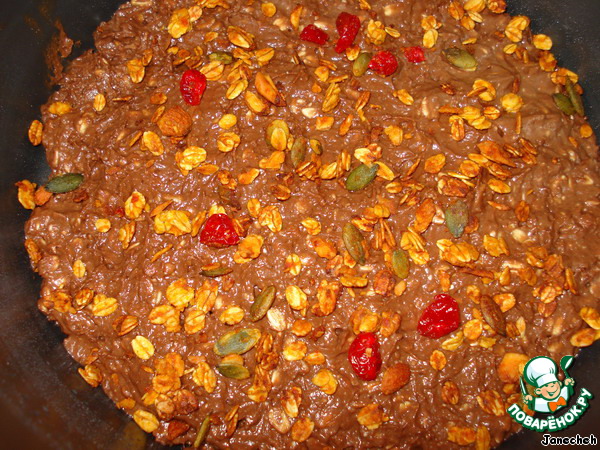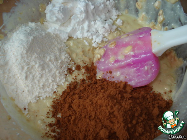 Рецепт «Шоколадное пирожное с творогом и овсяными хлопьями»: