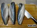 1.Скумбрию очистить от внутренностей, отрезать голову и хвост.