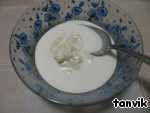 5. Теперь приготовим соус. Майонез разбавить сливками.