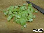 7. Затем режем так же мелко яйцо и добавляем в соус.