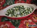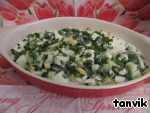 9.Поливаем скумбрию получившимся соусом (салатом) и посыпаем нарезанным зеленым луком.