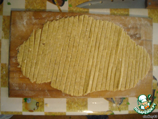 Нарезать полоски любой длины, шириной 5-6 мм.