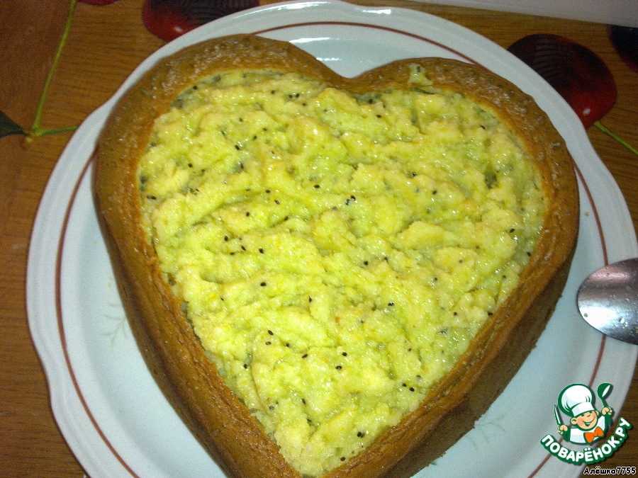 Если у Вас будет вариант, как у меня ( с крышечкой из теста) выкладывая верх, оставляйте полоску крема между крышкой и формой из теста.