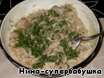 Всыпать зелень и снова перемешать. Дать настояться в холодильнике 15-20 минут.