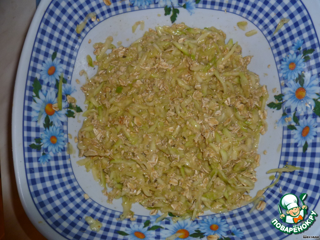 Смесь кабачка, хлопьев, яйца и специй хорошо перемешать, поставить на время в холодильник для набухания, минимум на 1 час (я оставляла на всю ночь)