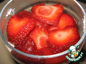 Выложить половину массы в креманку, на неё нарезанную клубнику.