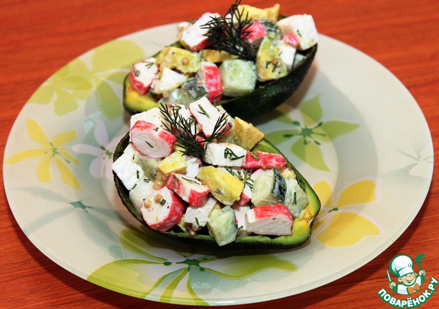 Быстро и легко можно приготовить салатик из авокадо и крабовых палочек.