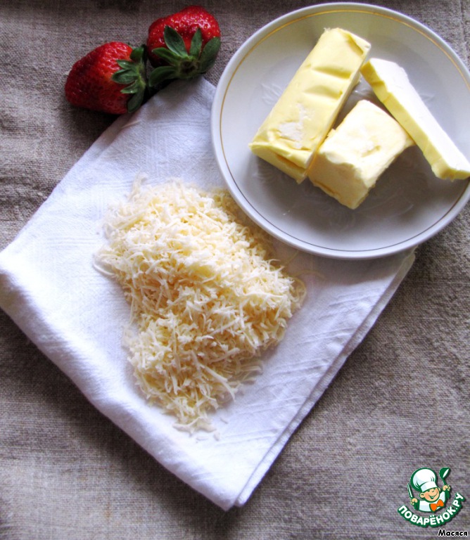 Приготовим нужные нам продукты: размягчим сливочное масло, натрем мелко сыр. Сыр лучше всего взять маложирный.