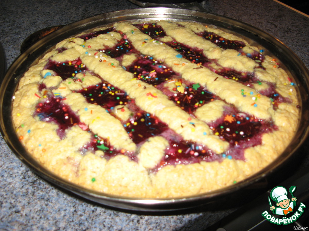 Кростата - это итальянский открытый пирог из песочного теста с различными начинками. Для такого пирога в качестве начинки я выбрала варенье из черной смородины. Изюминка моего пирога заключается в том, что я сделала 2 слоя начинки: одна из творога, другая из черной смородины. Творог пропитался вареньем, и получилась нежнейшая начинка.
