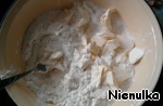 Добавляем сливочное масло и рубим в крошку с мукой.