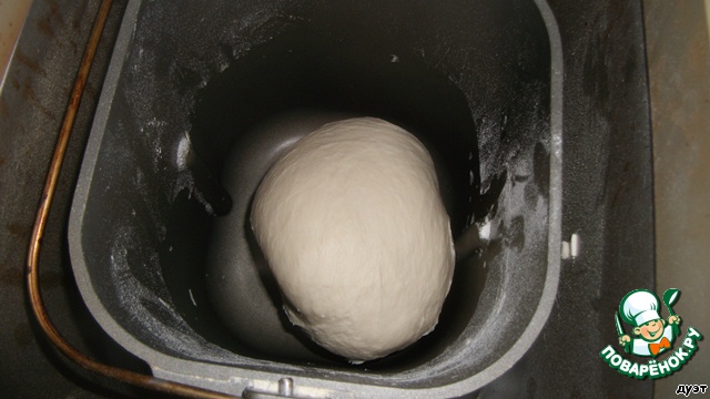 Поместить ёмкость в хлебопечку, включить режим "Тесто", через 1 час тесто готово (время по моей хлебопечке). |