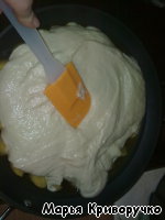 Как только сахар станет карамелью - снять с огня и выложить в форму дольки персиков. Отставить для остывания, а в это время готовим тесто.