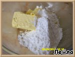 Сливочное масло взбить с сахарной пудрой до однородной массы.