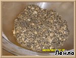 Сухие ингредиенты. Просеять муку, добавить соду, щепотку соли, овсяные хлопья и мак (чуть больше половину от нормы измельчила кофемолкой). Добавить к взбитому маслу.