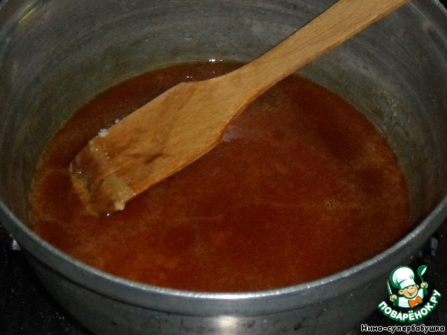 Расплавить и карамелизовать сахар на небольшом огне.