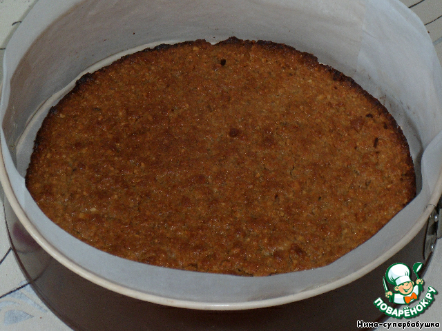 Дать чуть-чуть остыть, а затем вынуть из формы и снять бумагу. Если оставить надолго в форме, то карамель начнет таять, а корж, соответственно, мокнуть.
