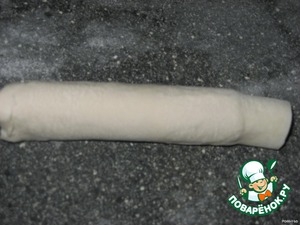 • Тесто разморозить, нарезать на прямоугольники по величине сосисок.