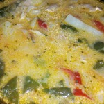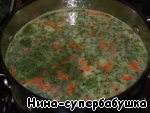 Положить в суп шпинат, мешать, пока он полностью не разойдется, довести до кипения, |