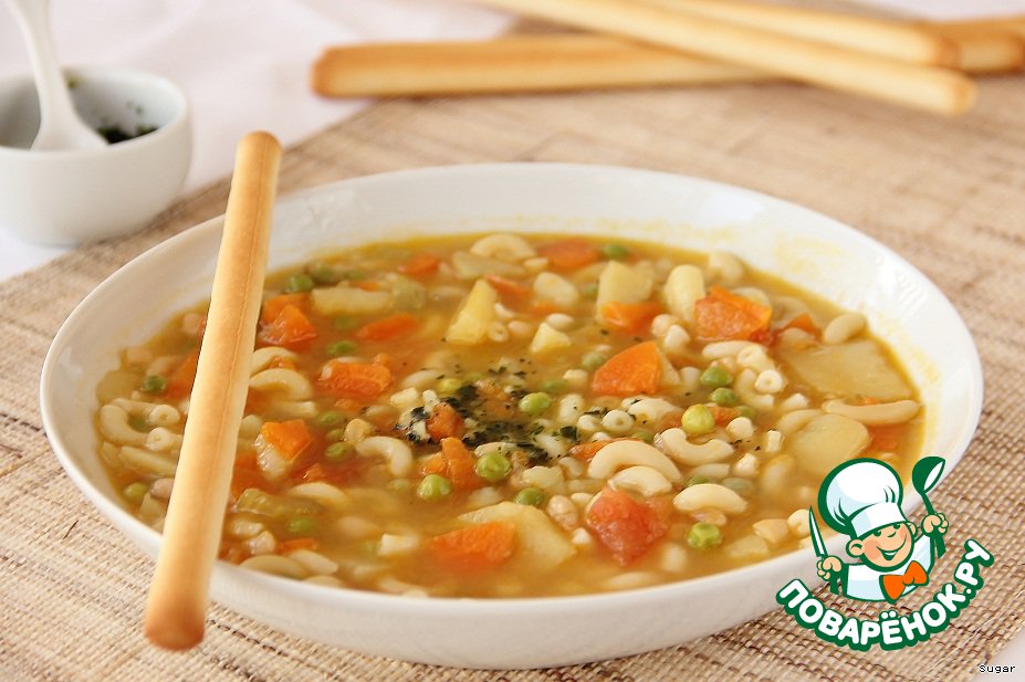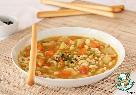 Minestrone d'inverno. С таким названием я нашла рецепт этого супа у одном журнале. Сытный, густой, просто готовится, к тому же понравился и большим, и маленьким.