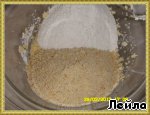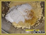 Затем миндаль (перемолоть в кофемолке), просеянную муку и сок лимона и снова перемешать.