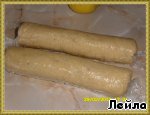 Разделить тесто на две части и сформировать колбаски диаметром 5 см. Завернуть в пленку и убрать в холодильник на 3 часа.