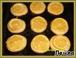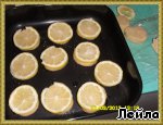 Лимоны тщательно помыть под горячей водой и обтереть полотенцем. Нарезать на очень тонкие дольки 1-2 мм и выложить на печенье сверху. Посыпать сахаром. Если у лимона грубая цедра, можно снять, чтобы не мешала при поедании ;-):-)