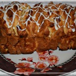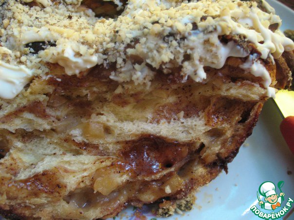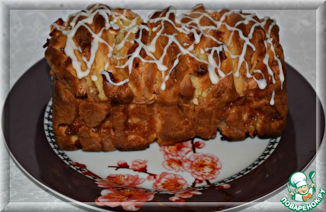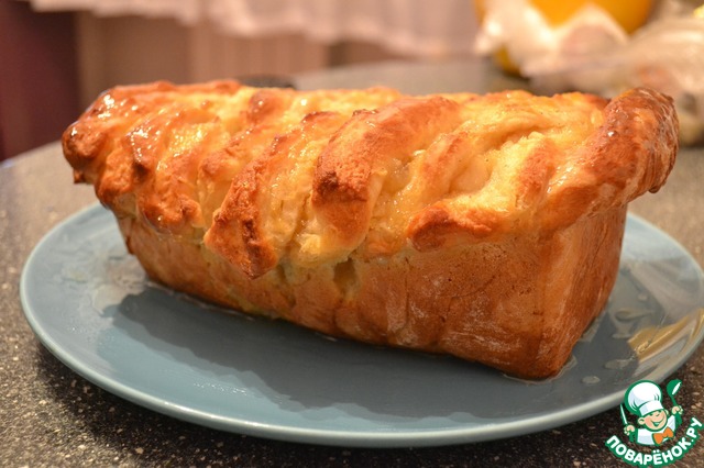 Глазурь: 1 ст. л. сливочного масла, 1 ч. л. ванильного сахара, 1/4 стакана сахарной пудры, 3 ч. л. молока. Хорошо вымешать и кисточкой покрыть пирог сверху. Можно использовать готовую глазурь со вкусом лимона фирмы «Dr. Oetker». Одного пакетика как раз хватает, а глазурь у них вкусная. Поверх глазури, пока она не застыла, можно посыпать измельченными орешками.