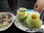 У яблок вырезать середину, но не до дна. И снять шкурку с верхней половины.