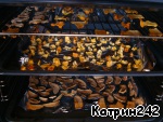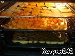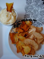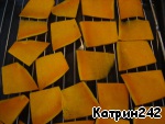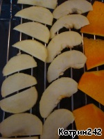 Приготовим наши хрустики. У меня были тыква и яблоки. Нарезаем их тонкими 1-2 мм пластинками, чем тоньше, тем быстрее они приготовятся. Если у вас есть терка Бернера, можете воспользоваться ею, это облегчит Вашу участь. Хрустики можно приготовить в сушке для фруктов и овощей. Я же сушу их в духовке. Тыкву сначала необходимо проварить в подслащенной воде минут 5, либо минут 5 в пароварке. Сушить 3-4 часа при температуре 50-60 градусов, потом 1-2 часа при 70 градусах.