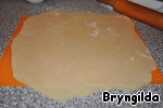 Форму смажем маслом и тонко, очень тонко, у меня тесто просвечивало, раскатаем тесто.