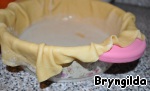 Выстелим им форму и смажем соусом.
