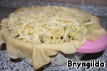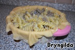 Теперь удалим лишнее тесто, и аккуратно загнем край и ставим в духовку на 15 минут.