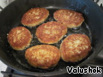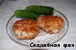Сформировать плоские шницеля, обвалять в сухарях и положить на сковороду с кипящим растительным маслом.